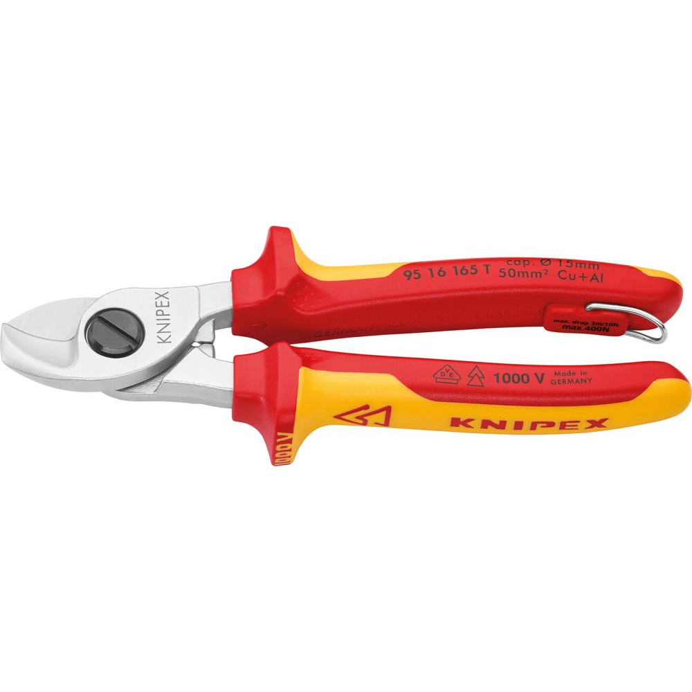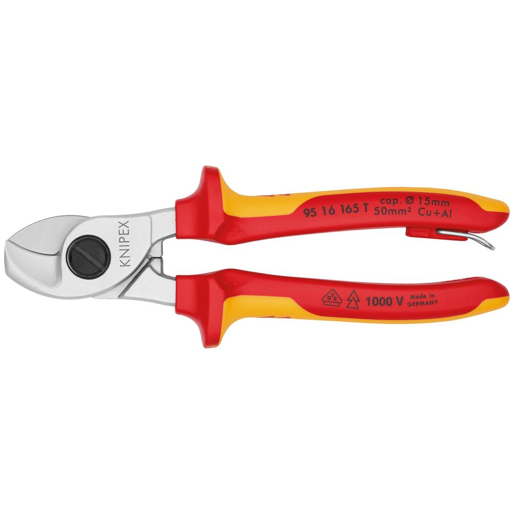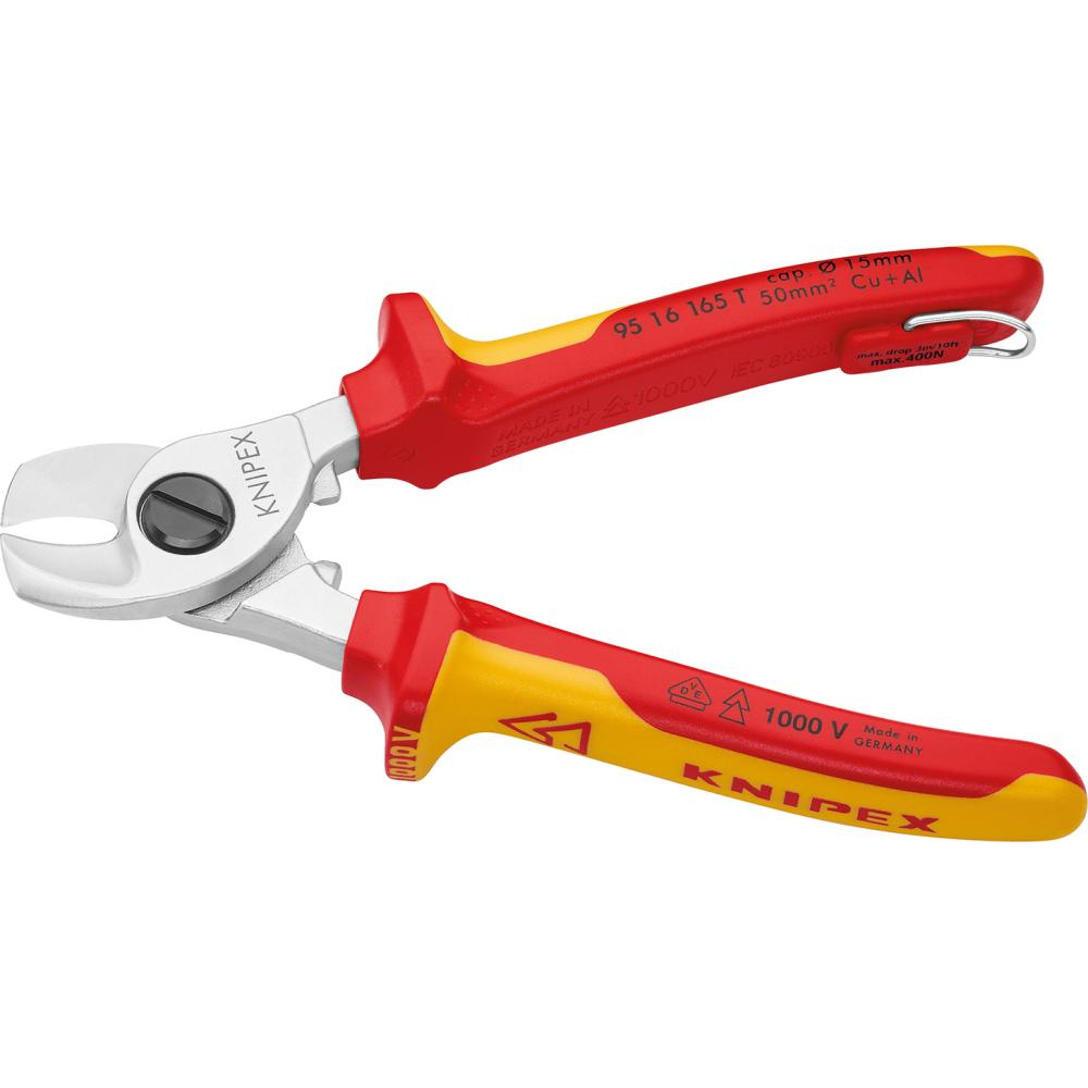 Nożyce do kabli, VDE, 165mm, z uchwytem zabezpieczającym, 95 16 165 T, KNIPEX