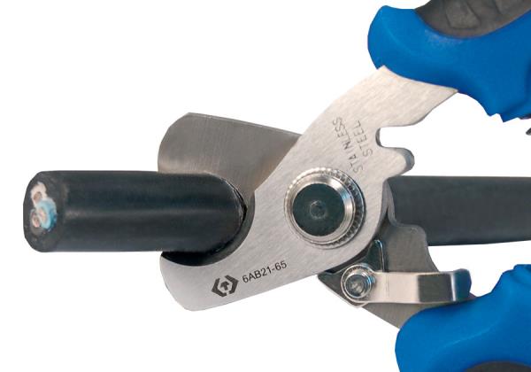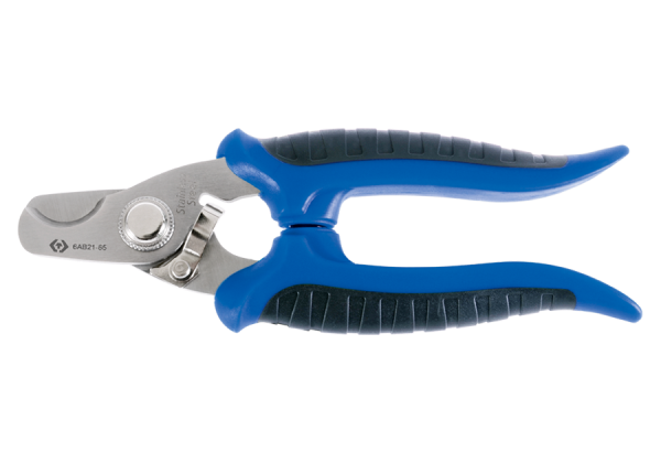 Zaokrąglone nożyczki dla elektryków z blokadą ostrza.Długość całkowita 158 mm Długość ostrza 22 mm Zakres cięcia 10 mm Karta produktu – 6AB21-65