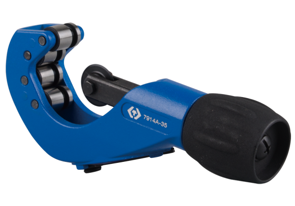 – do rur miedzianych, aluminium, mosiądzu- posiada regulację siły nacisku oraz śrubę ze zintegrowanym nożem do usuwania rąbków- 4 stalowe rolki- płynna regulacja średnicy cięcia- max. grubość ścianki rury 1,2 mm – zakres 3-35 mm – długość całkowita 140 mm Karta produktu – 7914A-35