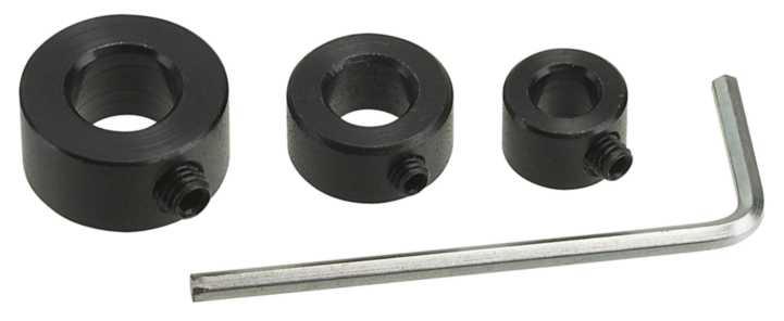 Zestaw ograniczników głębokości do wierteł krętych 6, 8 i 10 mm. Dostarczane z kluczem imbusowym.