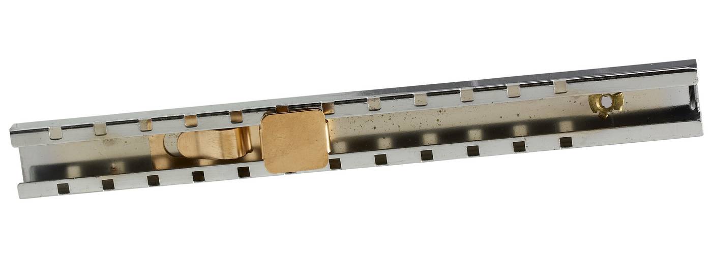 Konstrukcja tłoczona z blachy. Z zaczepem sprężystym. Niklowana. Pasuje do kredy 166380105.