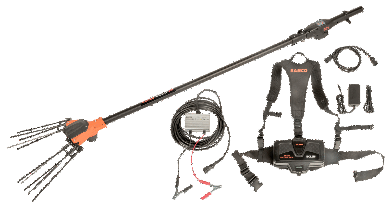 • BCL5B1PACK: Akumulator litowo-jonowy 720 Wh (20 Ah) do 5-6 godzin pracy w zależności od użycia, z ładowarką BCL5C1, kablem BCL5B101 i uprzężą BCL5H w zestawie