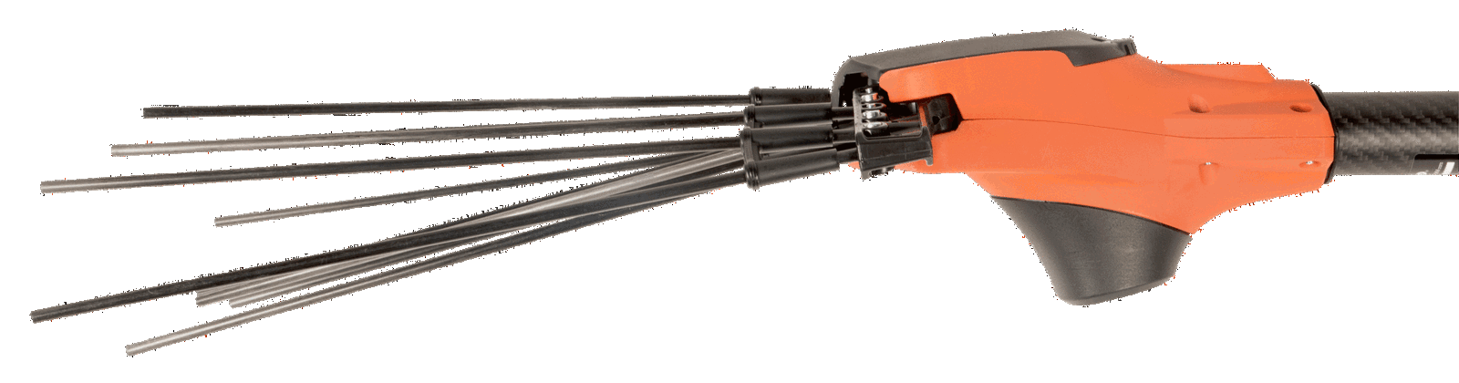 • Teleskopowa tyczka wykonana z włókna węglowego o długości 2,16 m – 2,96 m długości