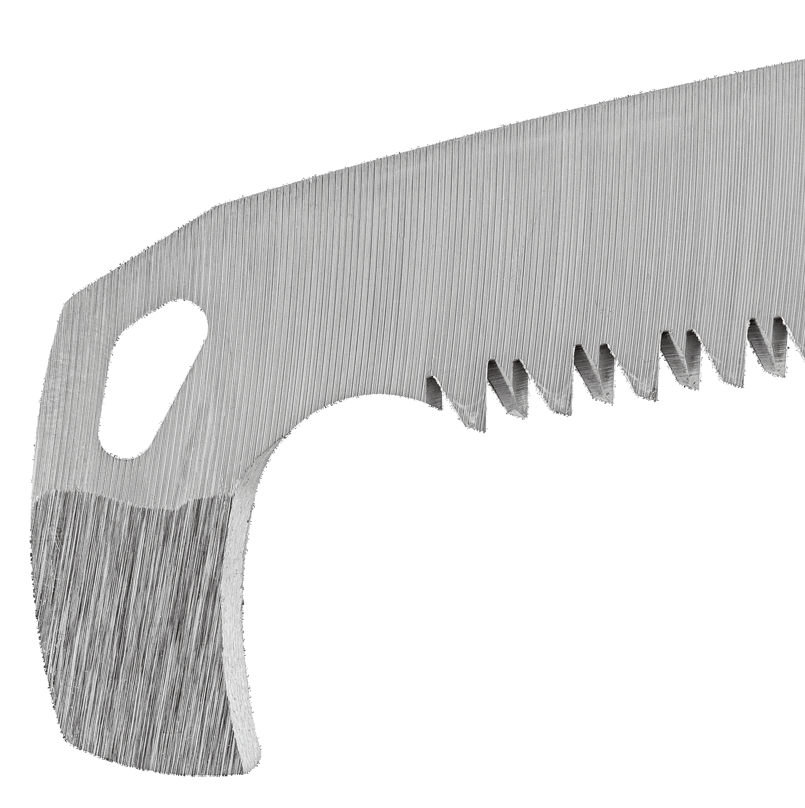 - Mocny brzeszczot z podziałką 5.4 zębów na cal o dłg. 390 mm z (zgrubne cięcie) do grubszych gałęzi i doraźnego cięcia