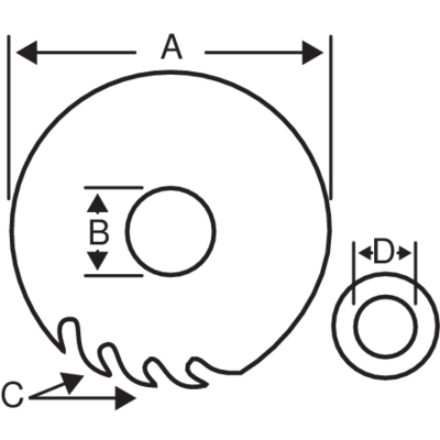 - Pierścienie redukcyjne (pomiar D) są w razie potrzeby dostępne dla niektórych ostrzy celem zmniejszenia średnicy wewnętrznej.