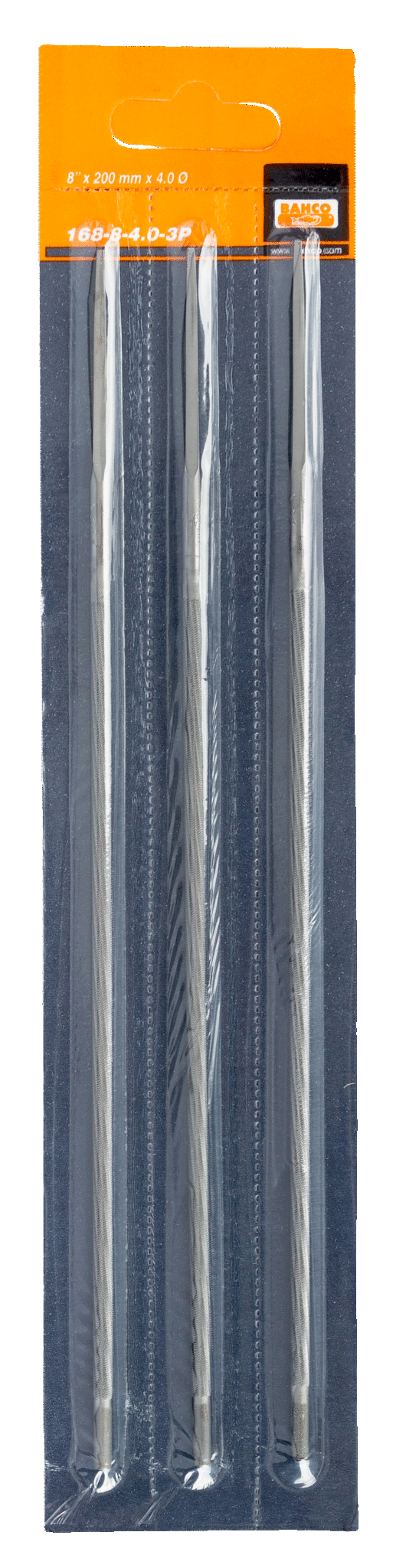 - Pilniki są zapakowane po 3 sztuki, każdy w oddzielną koszulkę ochronną z otworami do łatwego oddzielania