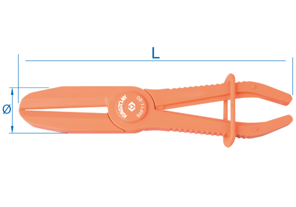 Do regulacji stopnia zacisku do przewodów o średnicy 60 mm Odpowiednie do zaciskania przewodów giętkich chłodnicy, ogrzewania, paliwa, płynu chłodzącego i hamulcowego. Długość szczypiec 253 mm, maksymalny rozstaw szczęk 65,2 mm Karta produktu – 9af11-60