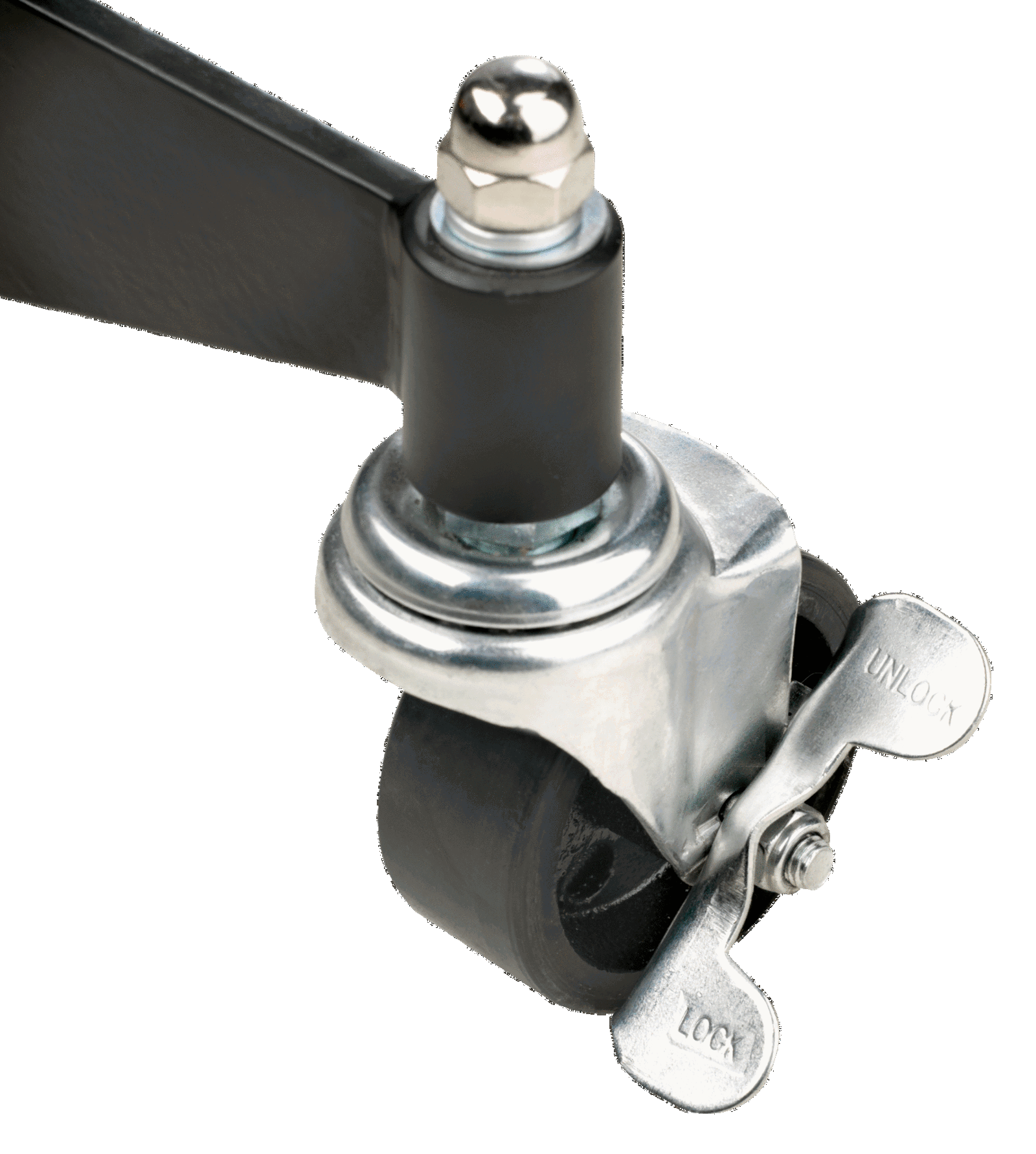 - Solidne stalowe koła skrętne (75mm) pokryte PU (2 z hamulcem) o dużej trwałości optymalnej zwrotności