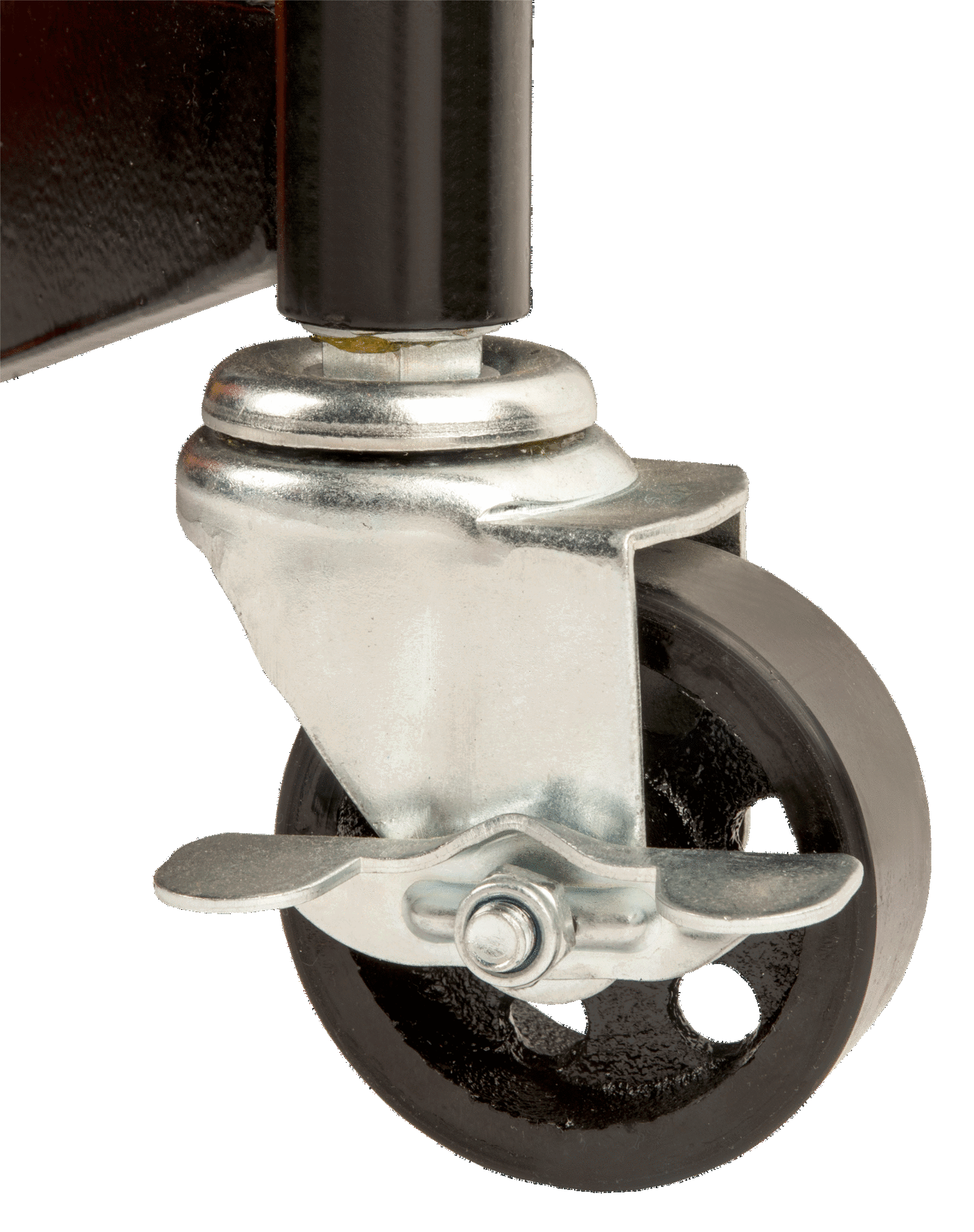 - Solidne stalowe koła skrętne (75mm) pokryte PU (2 z hamulcem) o dużej trwałości optymalnej zwrotności