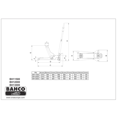 Podnośnik wózkowy 2T, udźwig 2000 kg, maks. wysokość 490 mm BAHCO