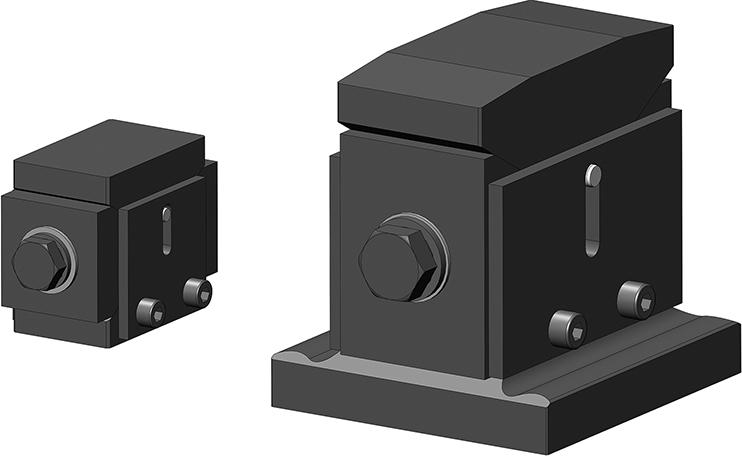 Zastosowanie: do mocowania ciężkich elementów odlewanych lub kutych na dużych obrabiarkach. Dodatkowo istnieje możliwość nałożenia podpórki klinowej na „ciężkie podpórki śrubowe“. W tym celu konieczny jest trzpień cylindryczny DIN 6325 (12 x 30 mm).