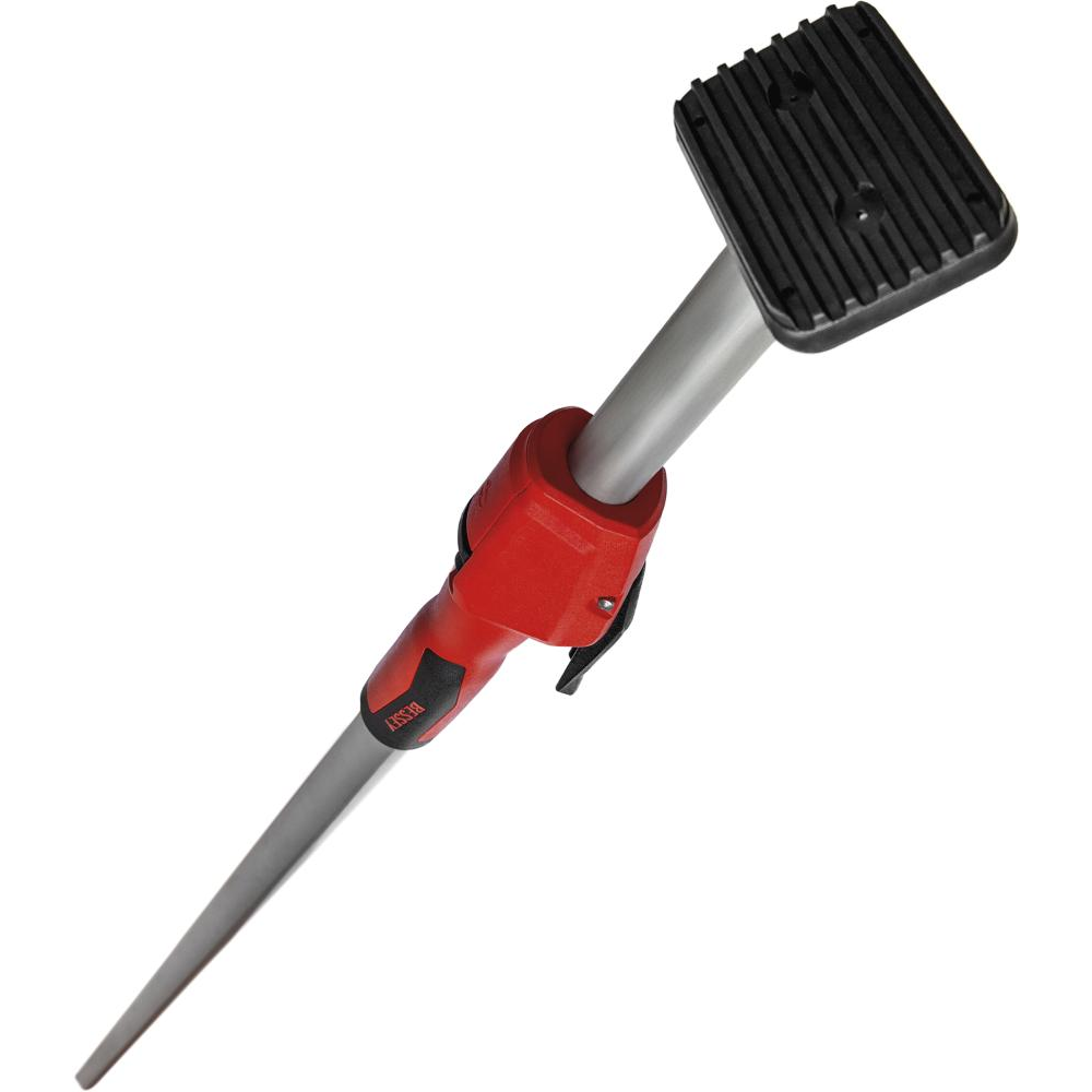 Wykonanie: stalowa konstrukcja rurowa o dużej wytrzymałości z gumowanymi powierzchniami nośnymi z PCV, które odchylają się pod kątem 45°. Szybka regulacja za pomocą przycisku, precyzyjna regulacja jedną ręką za pomocą dźwigni, blokada przez przekręcenie. Przy całkowicie złożonym drążku teleskopowym podpórka może wytrzymać obciążenie do 350 kg.