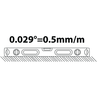 - 4 lines in each side of flat vial. Thick one is zero point. Each lines gives 1 mm/m extra for making slopes