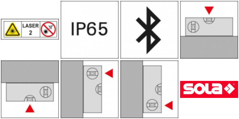 Wykonanie: profil prostokątny z aluminium, powlekany proszkowo. Moduł Solatronic do pomiaru nachylenia. Wyświetlacz podświetlany na stałe, obraca się podczas pomiaru w pozycji odwróconej, wskazania w stopniach, procentach, mm/m i wiele innych. Sygnalizacja akustyczna umożliwiająca szybkie ustawienie. Stopień ochrony: IP65. Zintegrowany interfejs Bluetooth®.
