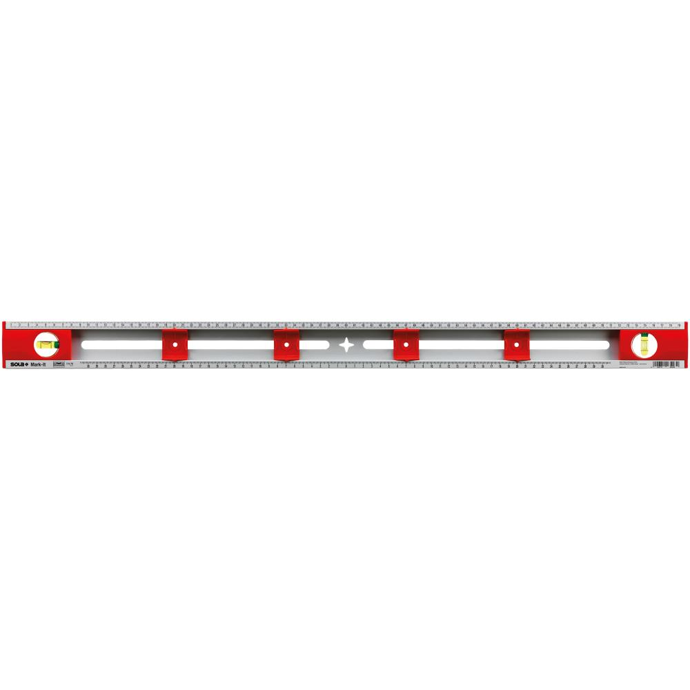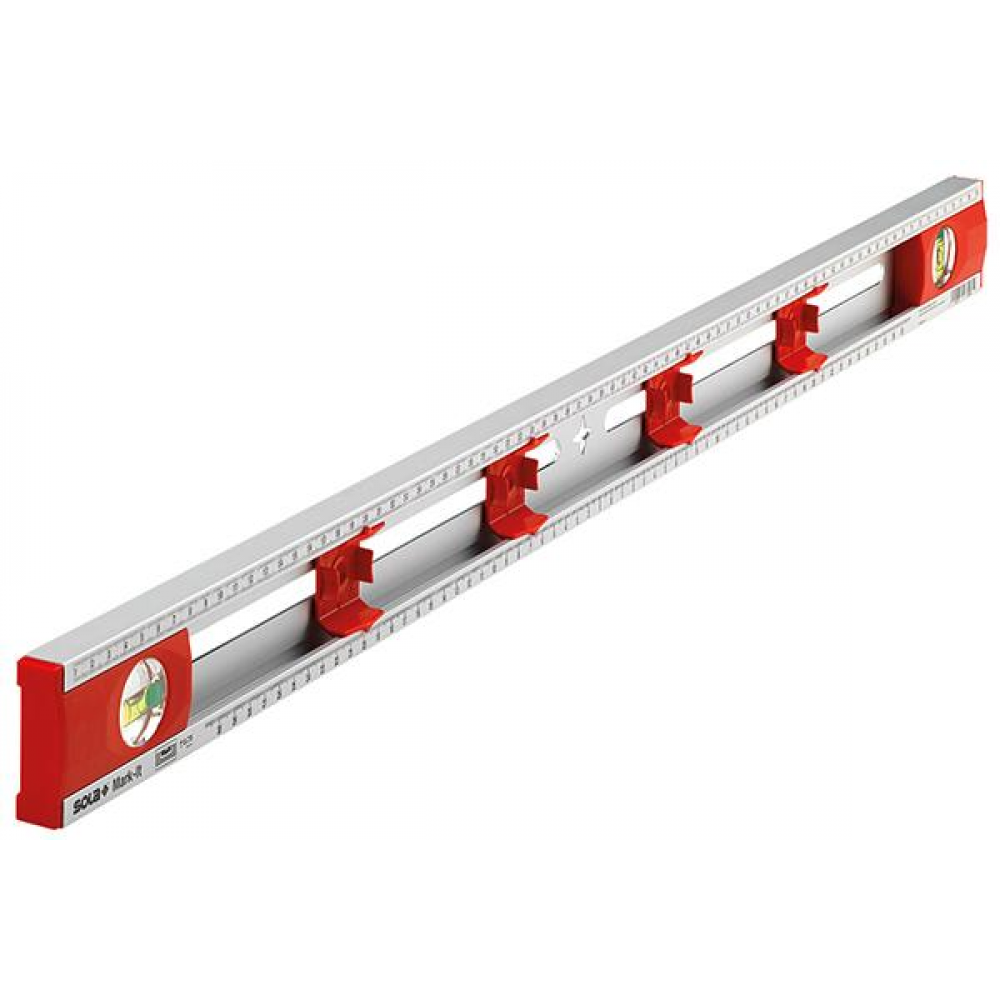 Wykonanie: z aluminium, profil C, powlekana. Nadrukowana podziałka zwykła oraz podziałka do pomiarów symetrycznych. Osłona z tworzywa sztucznego zapobiega przesuwaniu się poziomicy, jednocześnie chroniąc powierzchnię. Dokładność pomiaru w pozycji normalnej 0,75 mm/m.