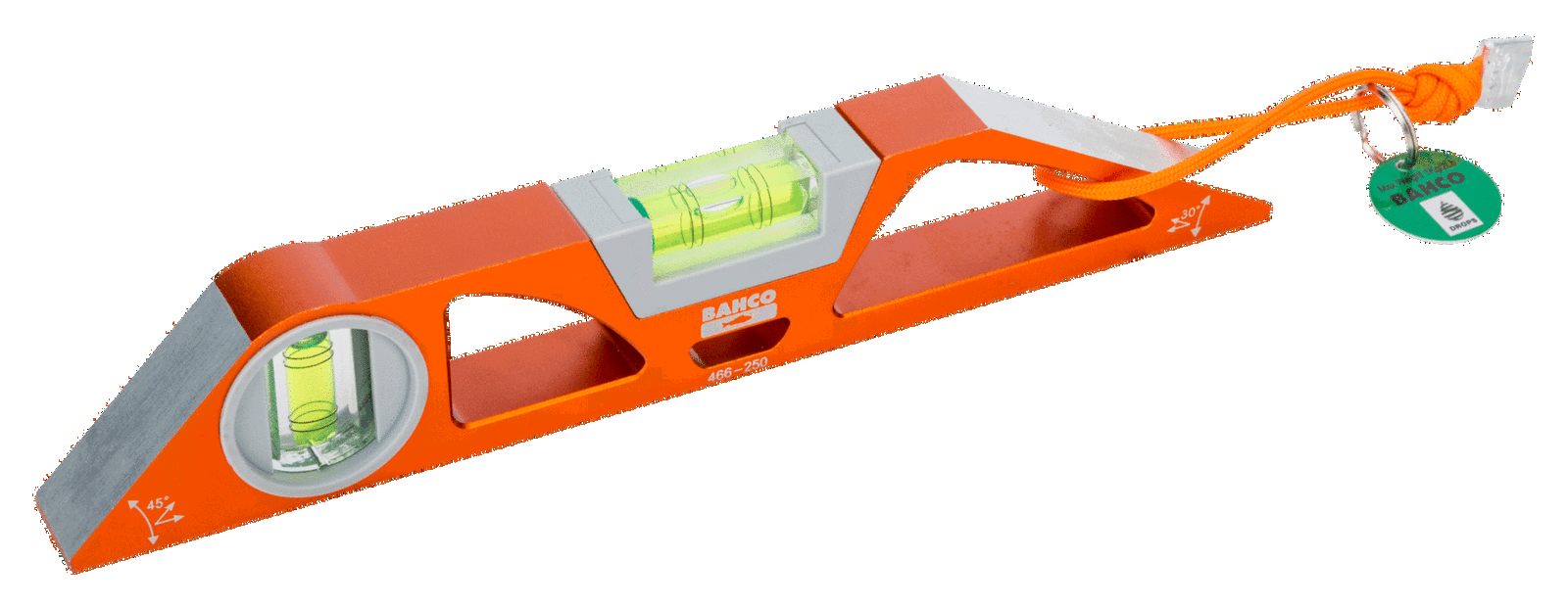 • Poziomica o dłg. 250 mm posiada ścięte pod katem 45° i 30° boki