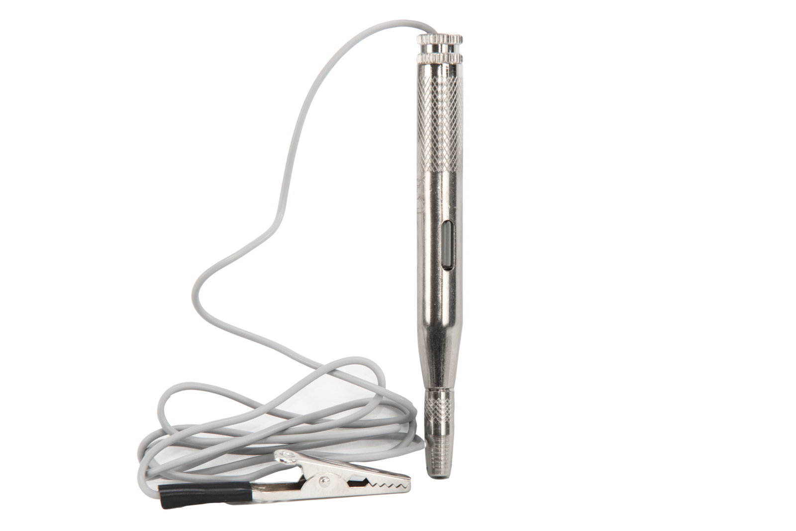 Do sprawdzania instalacji elektrycznej w samochodach. Z mosiądzu. Żarówka dobrze osłonięta od uszkodzenia. Wyposażony w końcówkę igłową do przekłuwania izolacji. Z zakrętką ochronną, kabelkiem i zaciskiem krokodylkowym. Niklowany.