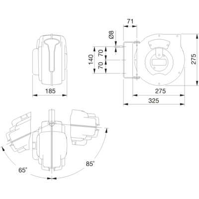 - Z metalowym uchwytem do montażu do ściany; kąt obrotu 150º