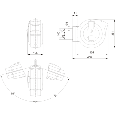 - Wspiera ramy ścienne, wykonane ze stali, obraca się 145 °