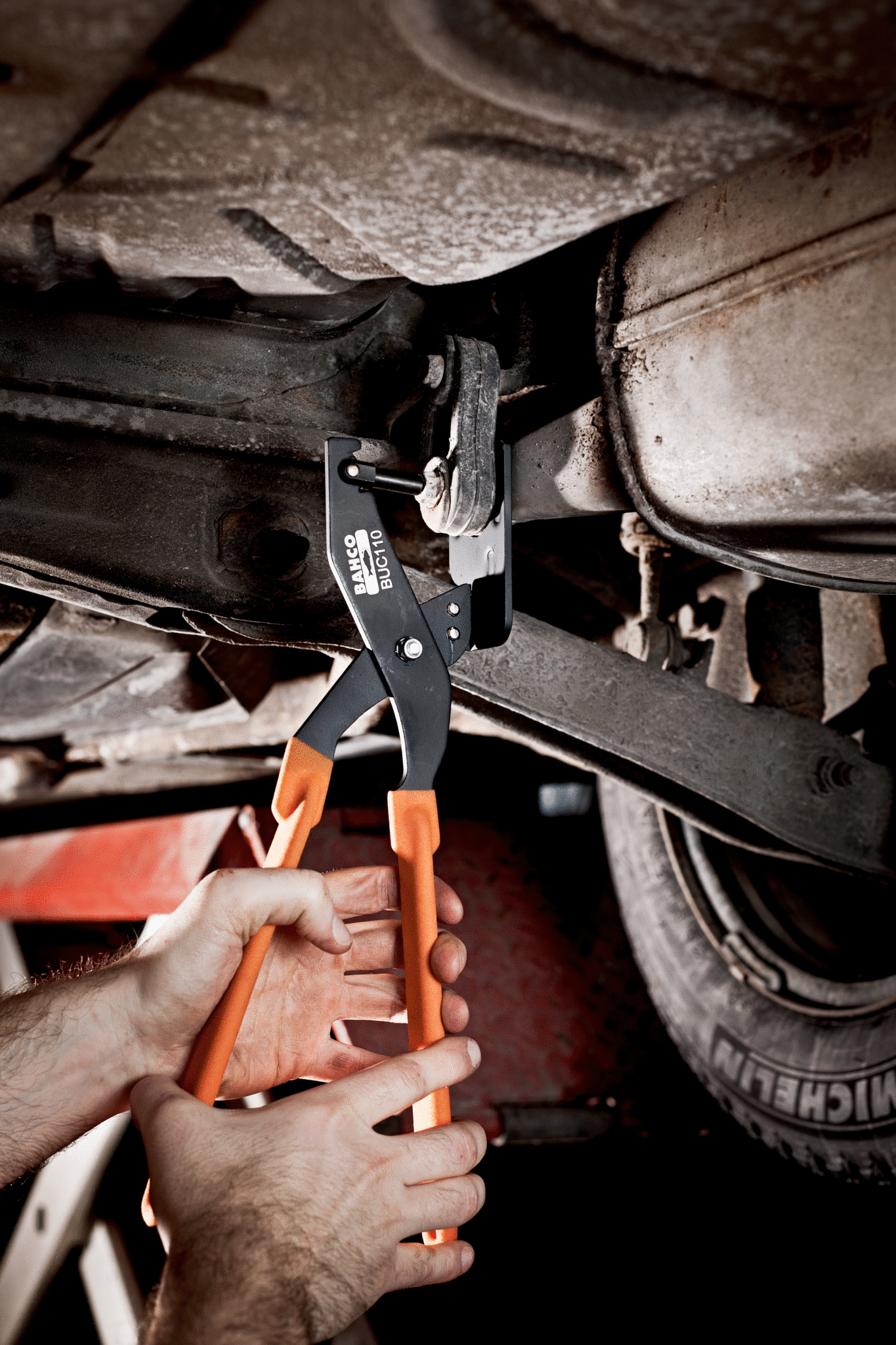 - Zastosowanie: Do szybkiego, łatwego i bezpiecznego uwolnienia układu wydechowego z zawiesi gumowych