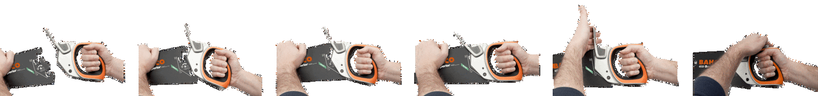 • Asymetryczny kształt sprawia, że siły oddziaływują na dłoń równomiernie (w tradycyjnych piłach ręcznych zazwyczaj siły koncentrują się na środkowej części ręki)