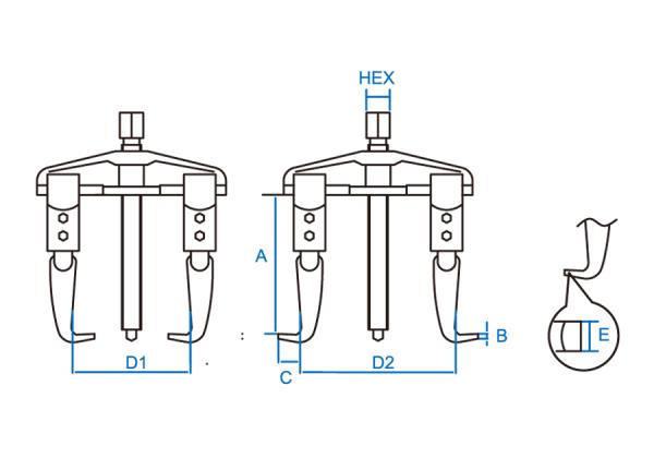 Wymiary:HEX 17 mm A – 100 mm B – 3,8 mm C – 14,5 mm D1 – 90 mm D2 – min.60 mm D2 – max. 125 mm E – 21 mm Karta produktu – 7962B-35