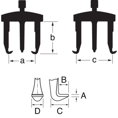 - Dzięki obrócanym ramionom ściągacz może być używany jako zewnętrzny lub wewnętrzny