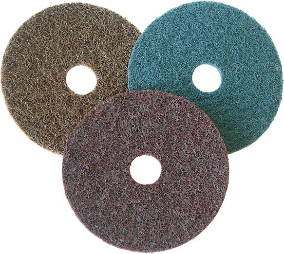 Wykonanie: spojona żywicą syntetyczną włóknina z ziarnem korundowym (A) na odpornej na rozdarcie tkaninie. Otwarta konstrukcja zapobiega zapychaniu się narzędzia. Otwór centrujący zapewnia jeszcze lepsze i dokładniejsze pozycjonowanie krążków ściernych z rzepem do talerzy szlifierskich. Zmniejszenie wibracji o około 50%.