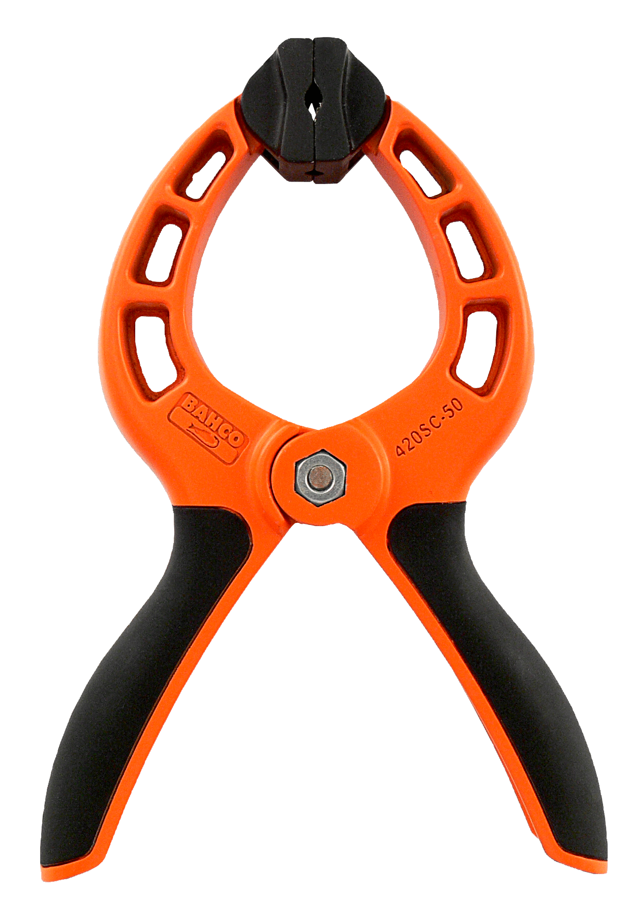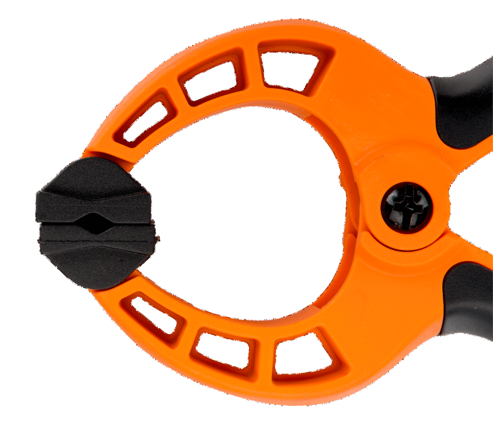 - Ręczny ścisk sprężynowy z ruchomymi szczękami dopasowującymi się do kształtu zaciskanego detalu