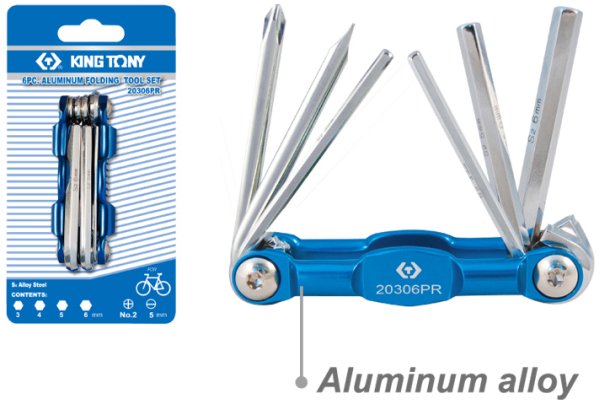 SCYZORYK ROWEROWY 6 cz. HEX H3 – H6, KRZYŻAK PH2, PŁASKI 5.0 Z ALUMINIUM King Tony