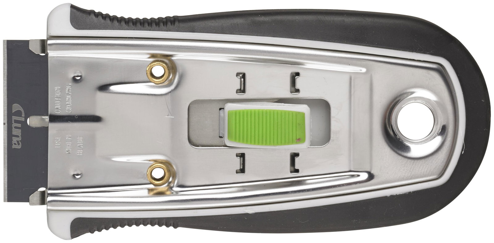 Skrobaczka do szyb. Wykonana ze stali nierdzewnej z elementami z tworzywa sztucznego i gumy zapewniającymi wygodne i bezpieczne użytkowanie. Ostrze można wysuwać i chować. Szerokość ostrza 39 mm. Otwór do dołączenia zabezpieczenia narzędzia.