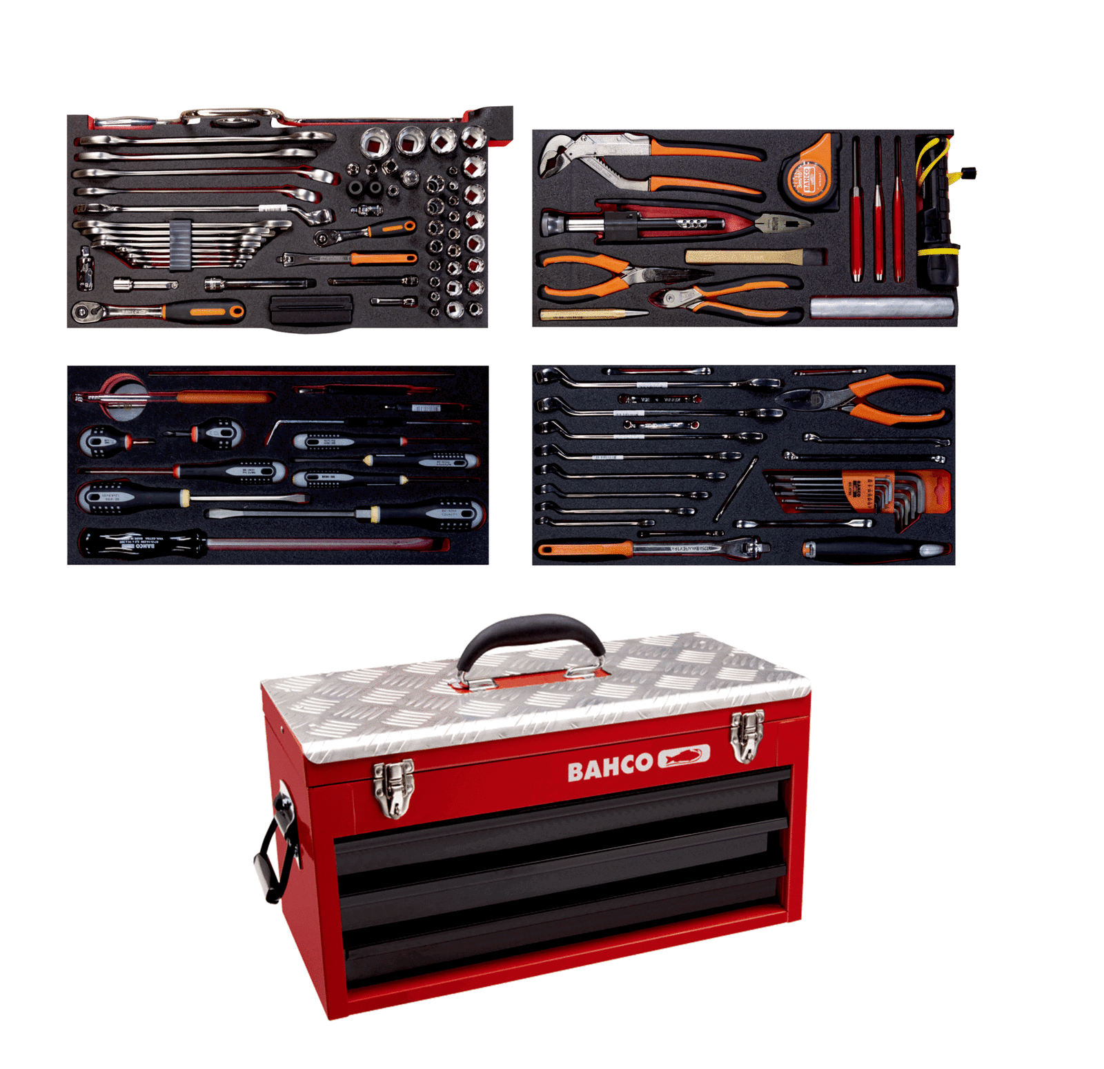 Skrzynka metalowa z wkładami narzędziowymi dla mechaniki lotniczej BAHCO