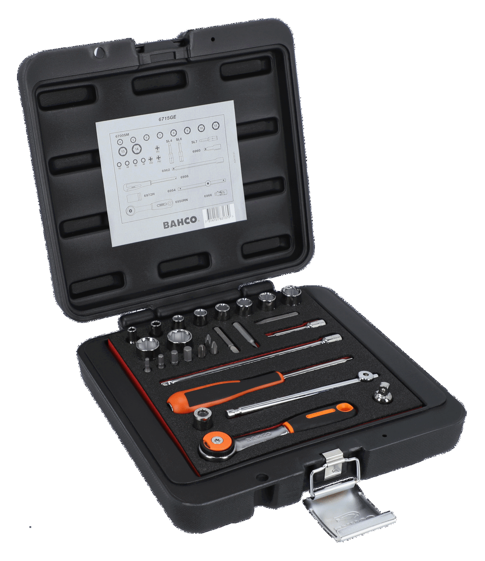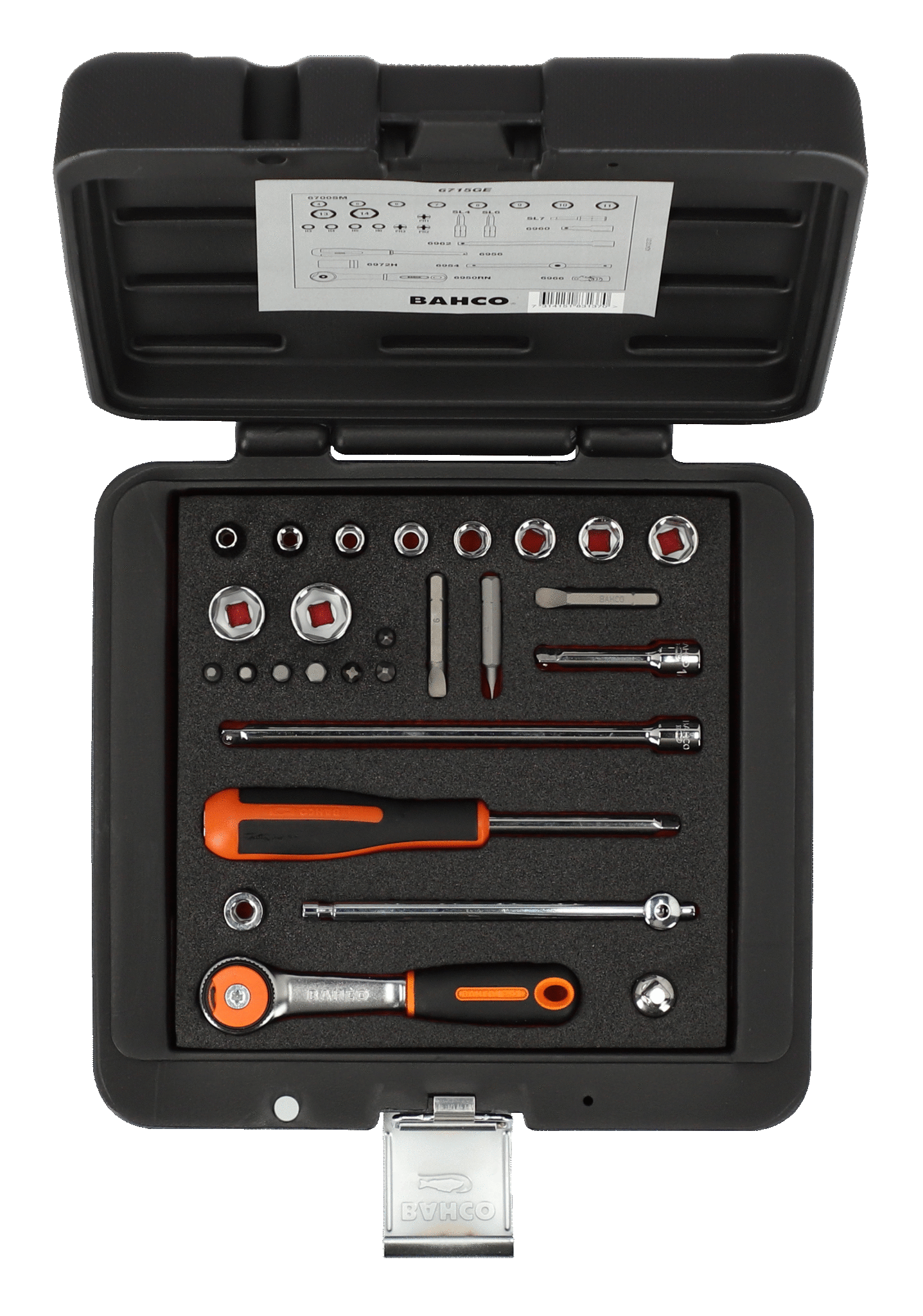 Skrzynka metalowa z zestawem narzędzi 1/4″, 27 szt. BAHCO