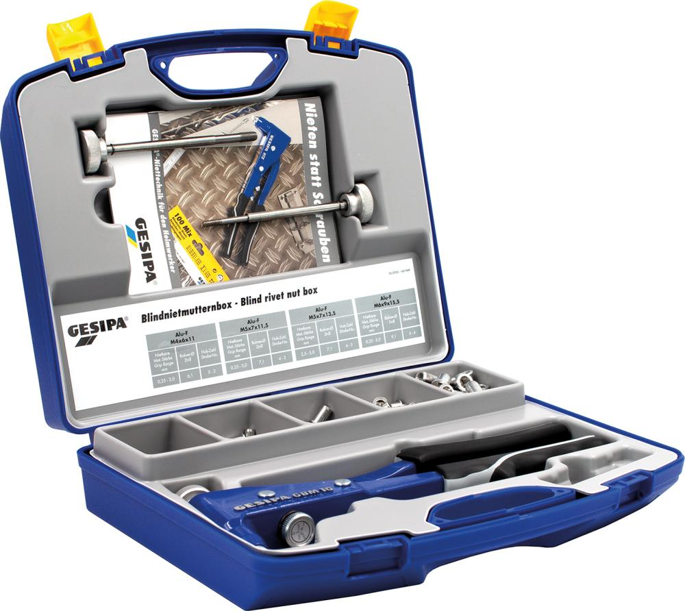 Skrzynka z nitonakretk.z nitownica do nitonakretekGBM 10 M4-M6, zestaw 195-cz. GESIPA