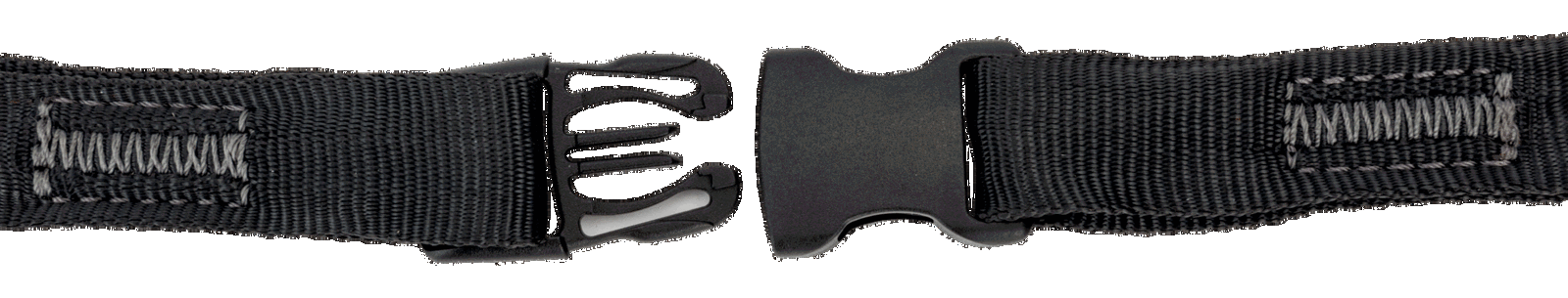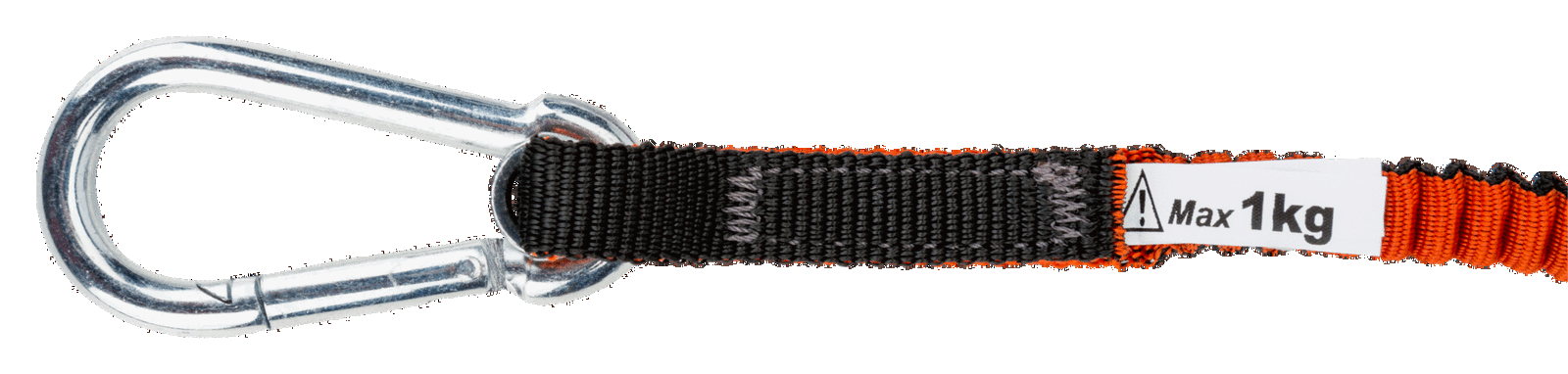 - Z jednej strony karabińczyk stale zamocowany, z drugiej zaczep linkowy ze złączką i blokadą