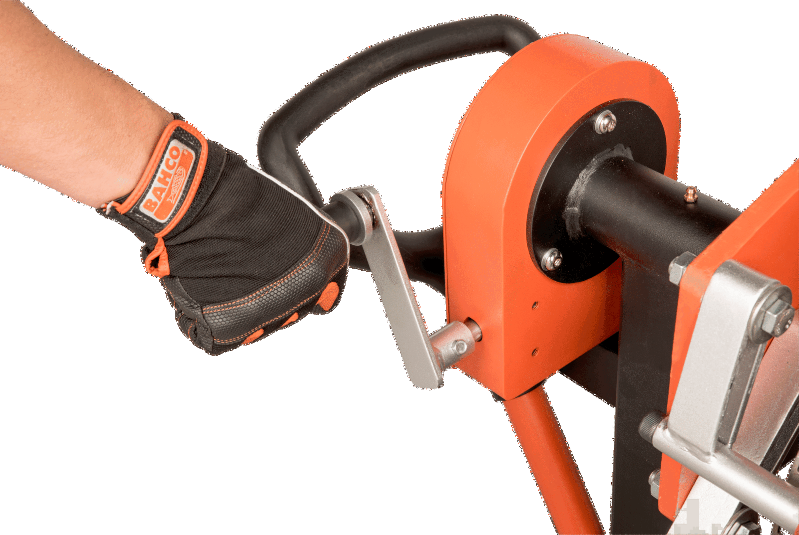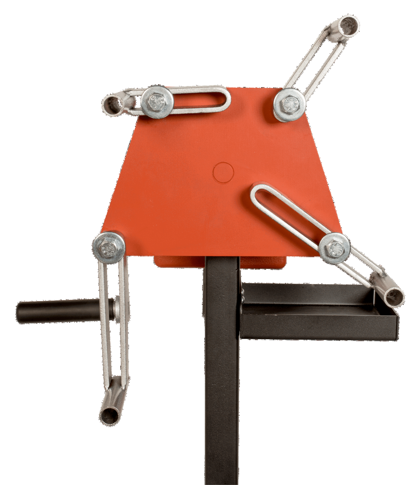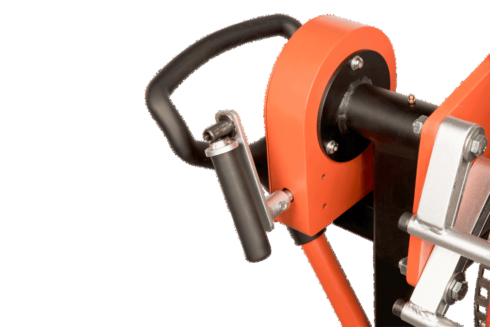 - System rotacji jest aktywowany przez sworzeń i opuszczany uchwyt pokryty gumą