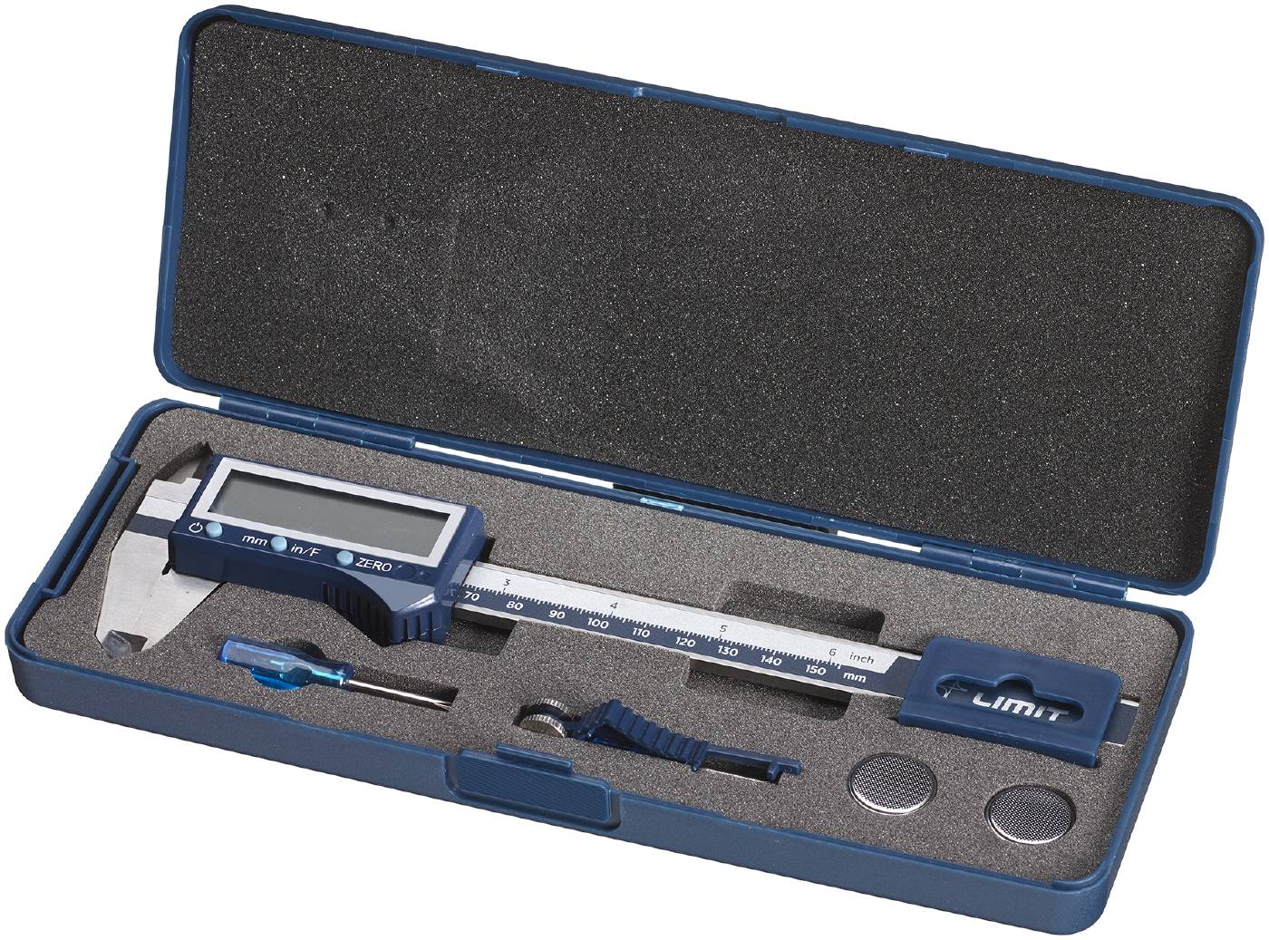 Suwmiarka cyfrowa z dużym wyświetlaczem LCD z cyframi 13 mm, zapewniającym szybki odczyt wyniku pomiaru. Może mierzyć średnicę wewnętrzną, średnicę zewnętrzną, głębokość i wysokość, ponadto posiada funkcję rysika. Podziałka ze stali nierdzewnej. Wynik podawany w mm lub calach, szybkość reakcji 3.0 m/s, automatyczne wyłączanie. Pomiar bezwzględny, jak i możliwość ustalenia zera w dowolnej pozycji. Wykonanie zgodne z DIN 862. Załączona bateria typu CR2032.