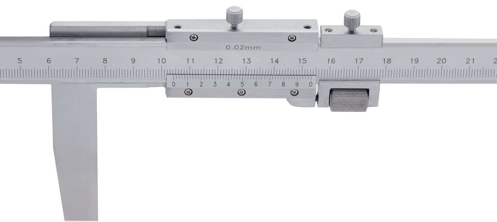 Z hartowanej stali narzędziowej, z nastawianiem precyzyjnym. Do pomiarów szczelin wewnętrznych. Suwmiarka 12817-0107 posiada podwójne szczęki pomiarowe.