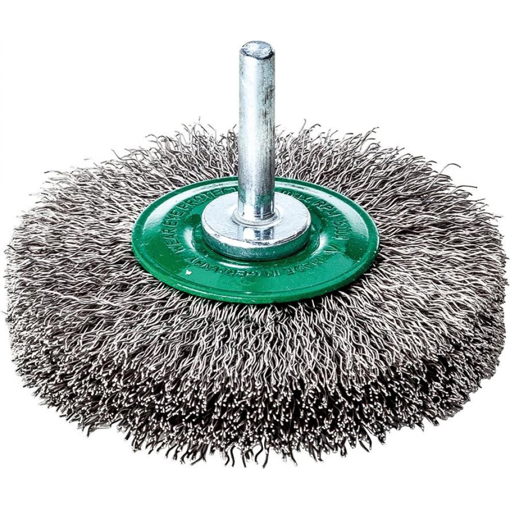 Szczotka tarczowa trzpieniowa, drut ze stali nierdzewnej (1.4401), falisty