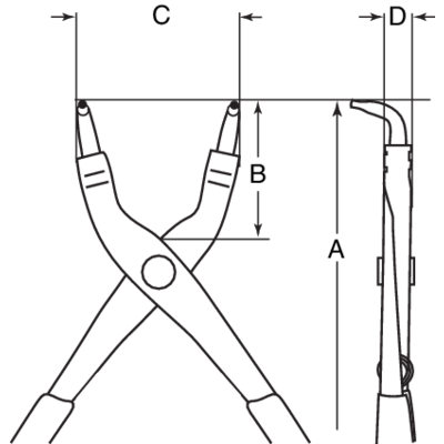 - Szczypce bez sprężyny powrotnej do wewnętrznych pięrścieni osadczych