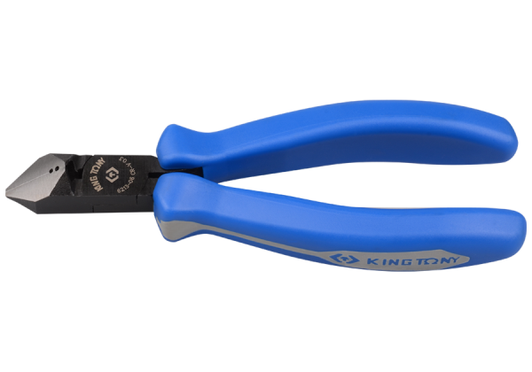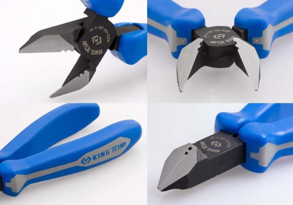 Szczypce tnące boczne typu japońskiego King Tony. Całkowita długość szczypiec 163 mm. Wygodna plastikowa rączka, możliwość cięcia przewodów do 1.25 mm w zależności od twardości Karta produktu – 6213-06