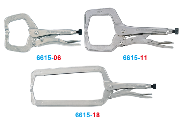 Blacharskie szczypce zaciskowe King Tony. Długość całkowita 280 mm, maksymalna rozpiętość szczęk 100 mm Karta produktu – 6615-11