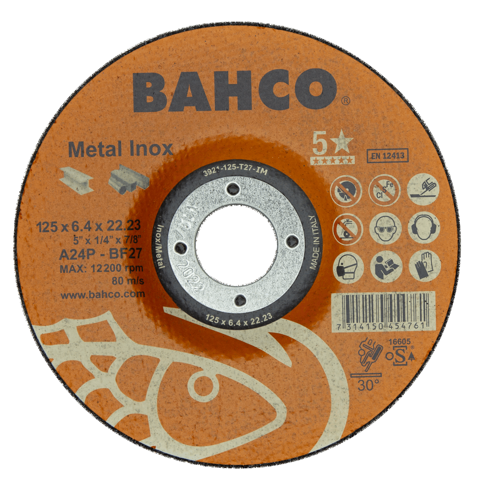 Tarcza do szlifowania metalu i Inox 125×6.4mm BAHCO (25 szt.)