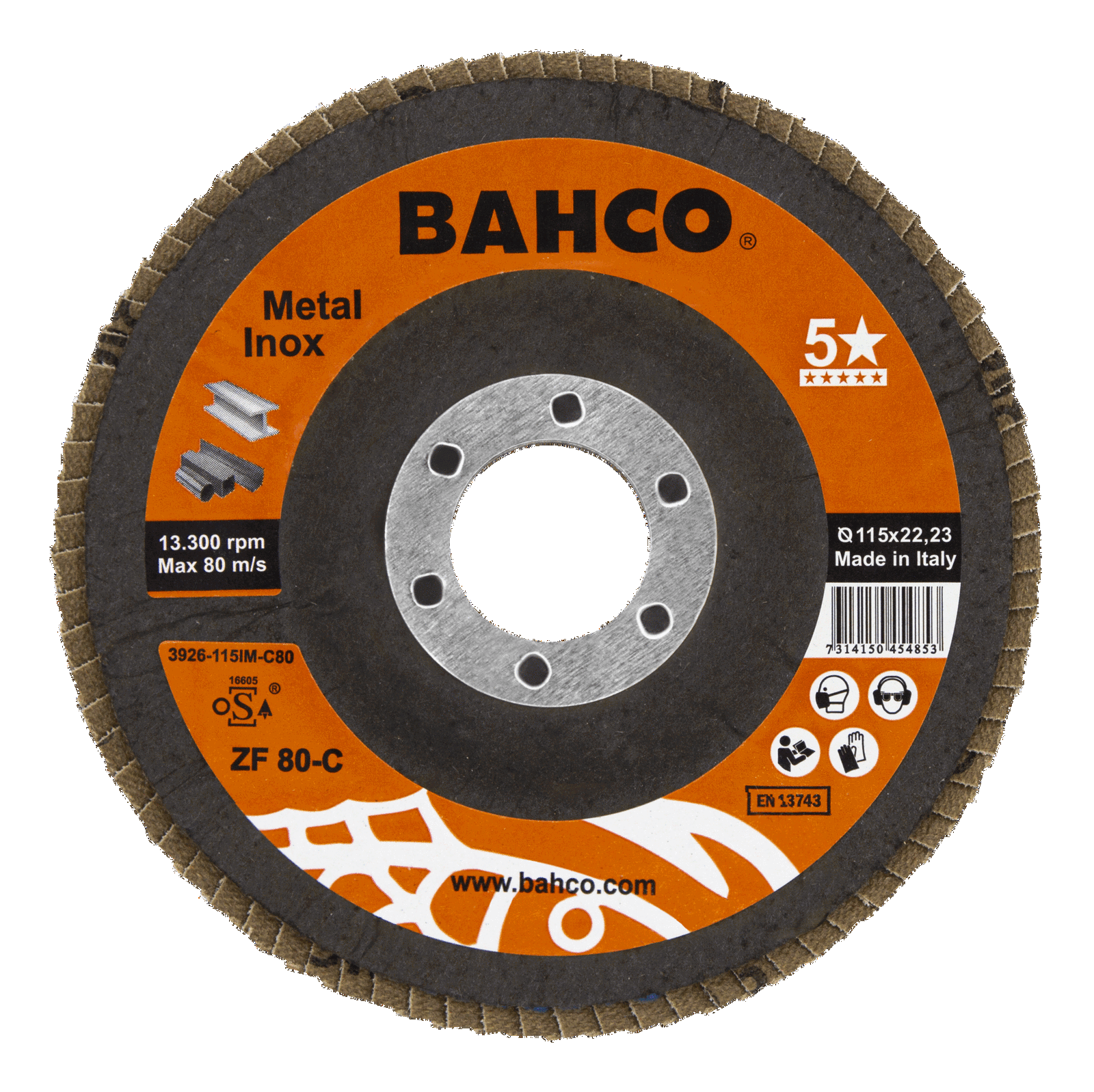 Tarcza lamelkowa płaska 100% cyrkonu 115 mm P60 BAHCO (20 szt.)