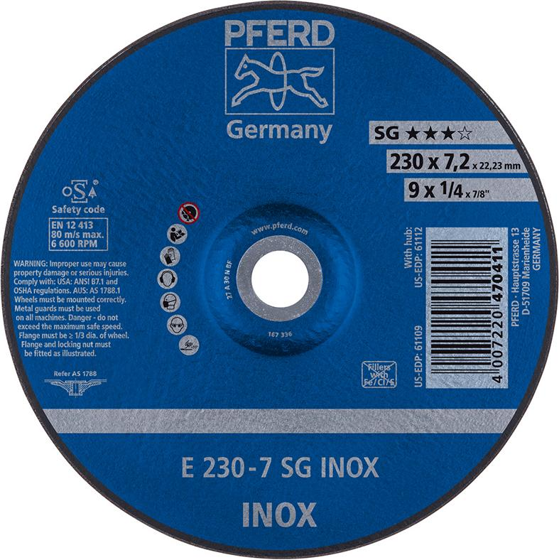 Tarcza scierna do obr. zgrubnej, odsadzona do V2A A30NSG 230×8,3mm PFERD