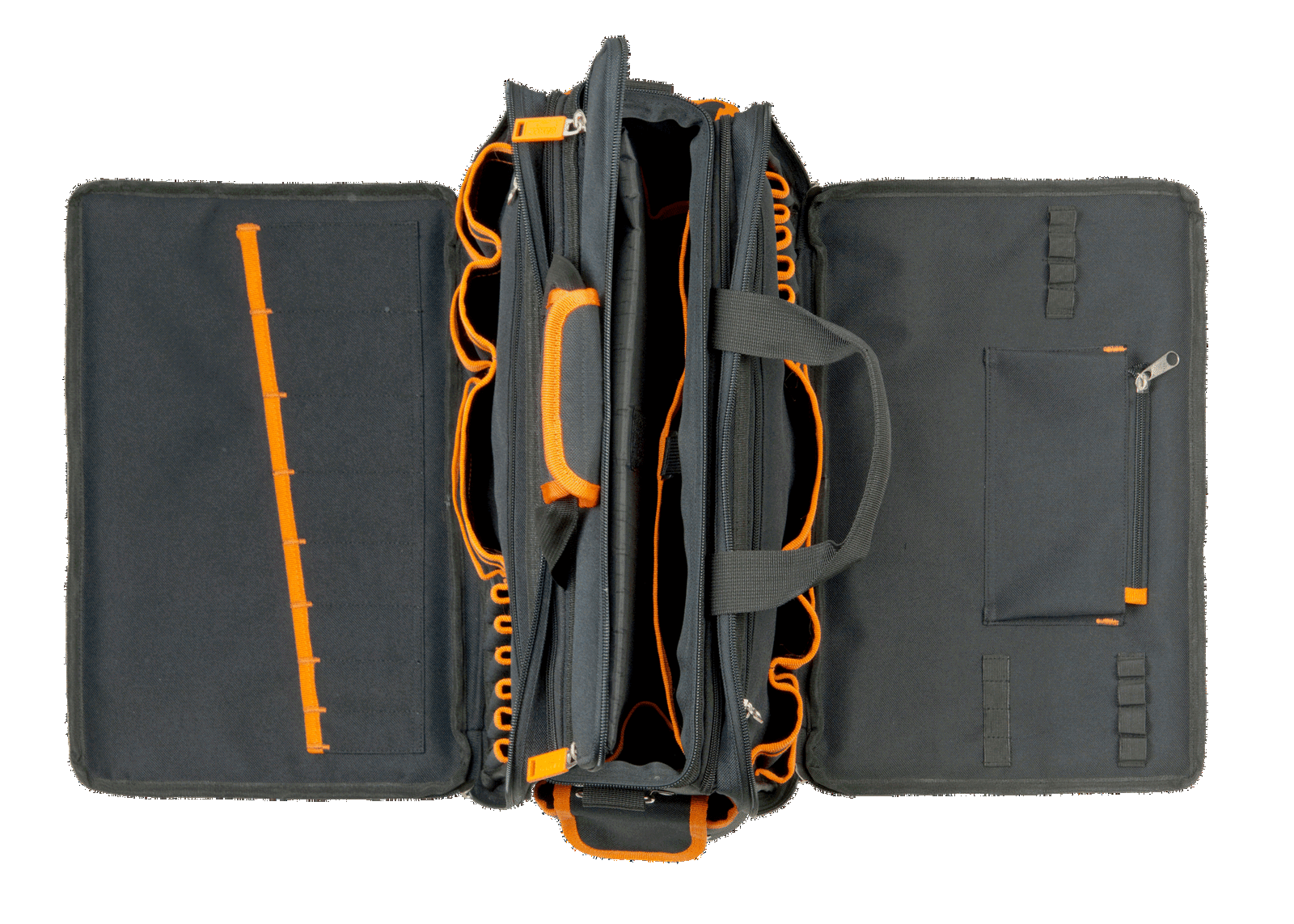 - Duża, wzmocniona centralna komora na laptopa wyścielona delikatnym materiałem