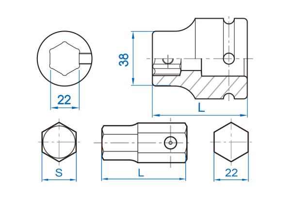 Uchwyt udarowy 1″ do bitów 22 mm udarowych King Tony 809622M. Nasadka wykonana jest ze stali chromowo-molibdenowej, fosforowana. Narzędzie spełnia normę DIN 3121. Uchwyt umożliwia pracę z bitami udarowymi z uchwytem 22 mm serii 1954 King Tony.