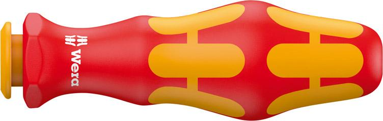 Wykonanie: 3-komponentowa, rękojeść Kraftform, ze zintegrowanymi, miękkimi wkładkami poprawiającymi chwyt i z zabezpieczeniem przed staczaniem się, izolowana do 1000 V według IEC 60900, DIN EN 60900, VDE 0682/część 201, z badaniem sztuk przy 10000 V.