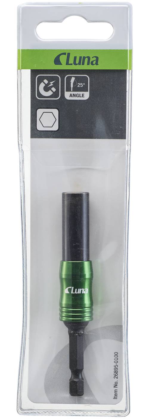 Kątowy uchwyt szybkomocujący do grotów. Możliwość ustawienia końcówki pod kątem 25 stopni umożliwia pracę w miejscach o ograniczonym dostępie do śrub i wkrętów.