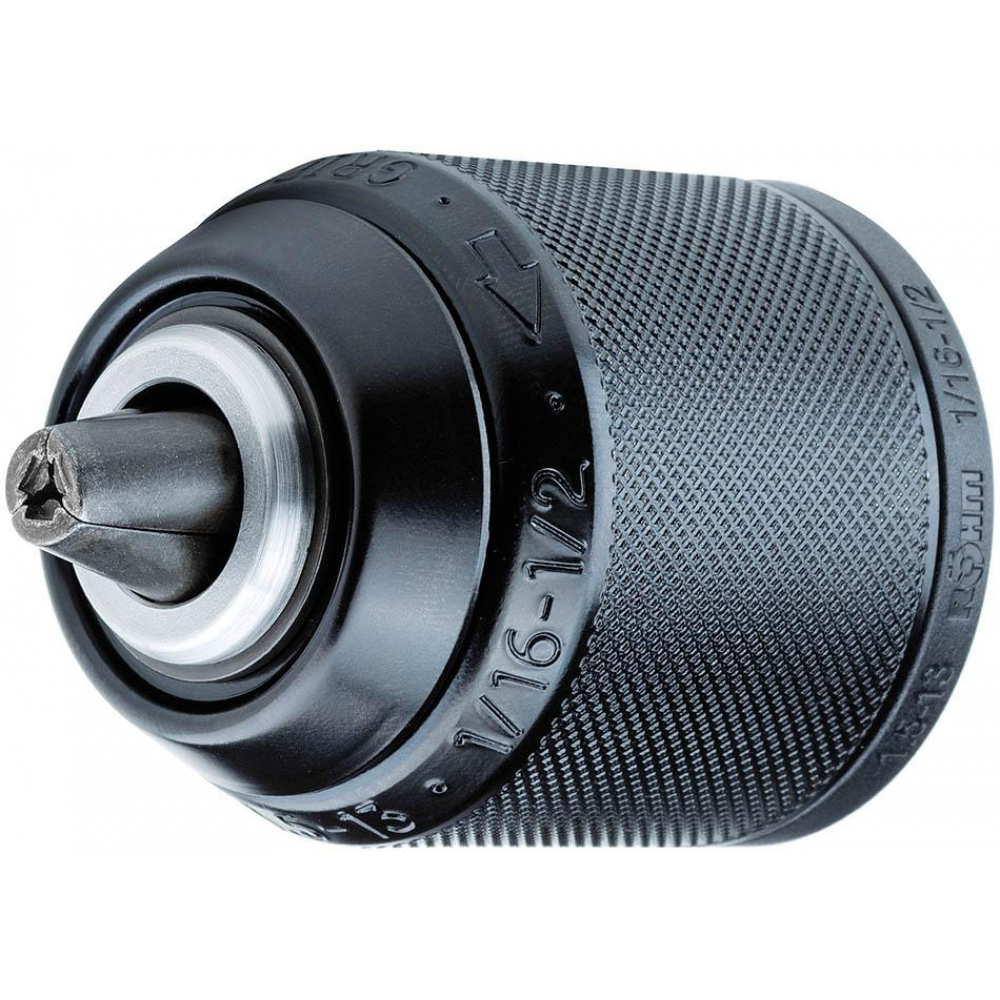 Wykonanie: z pierścieniem przytrzymującym i sześciokątem do montażu i demontażu, z tworzywa sztucznego. Bezkluczowy, szybkomocujący uchwyt wiertarski, do wiercenia udarowego, automatycznie zaciskający się podczas wiercenia, bez konieczności dodatkowego ryglowania, bardzo ergonomiczny i łatwy w obsłudze, wyposażony w zabezpieczenie najazdowe. Rozmiar 13 mm ze szczękami zaciskowymi z węglika spiekanego.